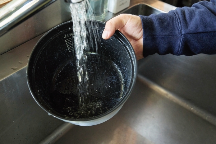 無洗米の場合は、お米を軽くすすぎ、水の量はちょっと多めに。30-60分を目安に放置して吸水させておきましょう。