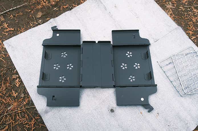 焚き火台と収納ケースの他に網、ロストル(炭床)も付属しています。