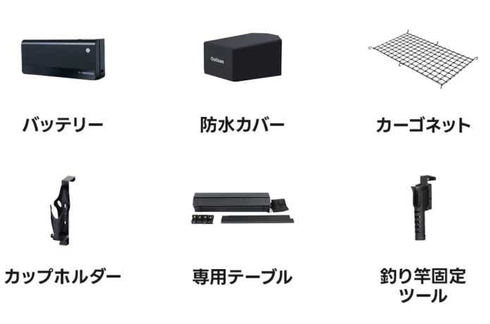 より多くの荷物を積載しつつ、荷崩れを防ぐ「カーゴネット」や、雨による荷物の濡れを防ぐ「ワゴンカバー」、追加のバッテリーパックなど、便利なオプションもラインナップ。必要に応じて買い足しましょう!