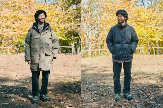 左:CR ワークパーカー+ボリュームダウンジャケット、右:ボリュームダウンジャケット単体