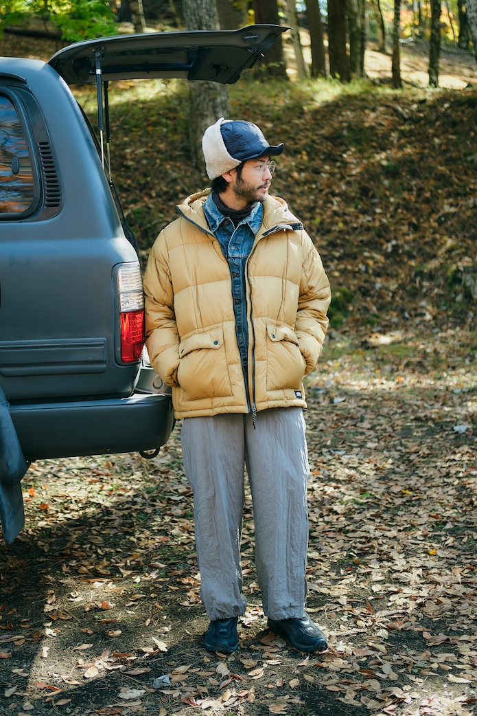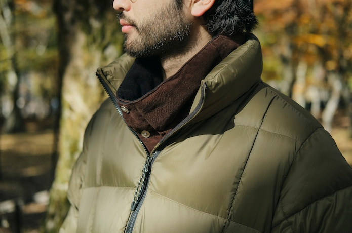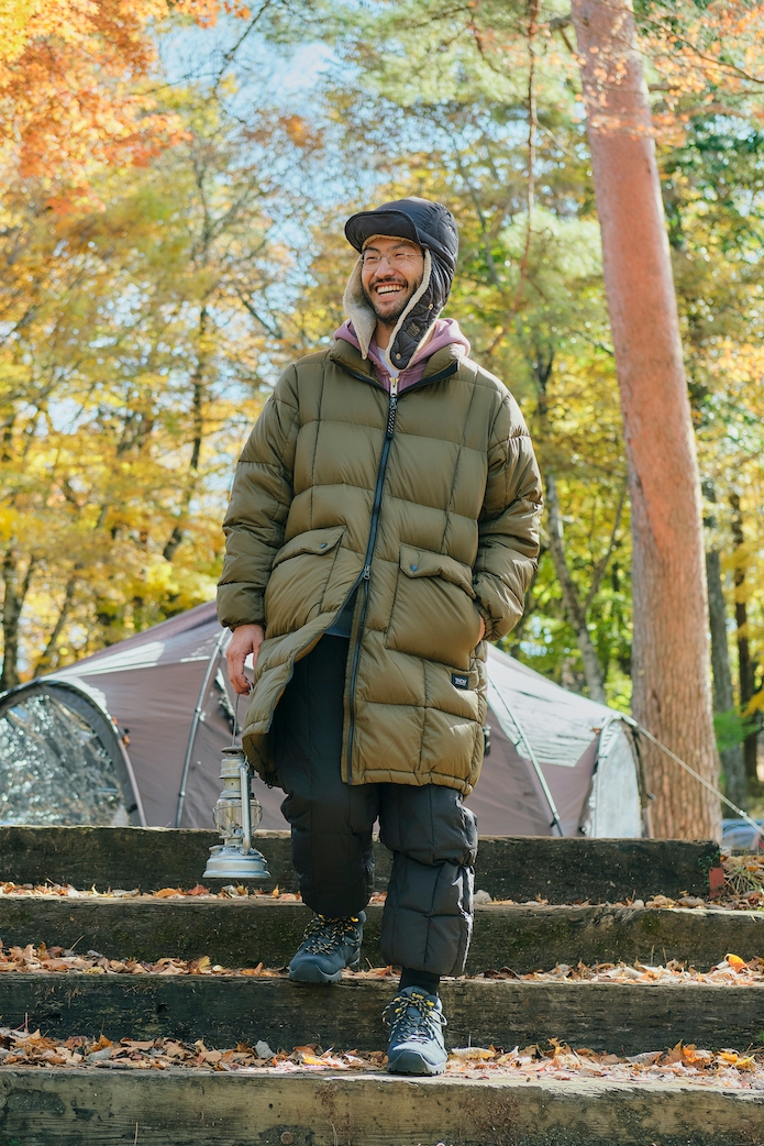 続いて、こちらはスタンドカラー仕様の「マウンテンパッカブルボリュームダウンコート」。ボリューミーながら縦長なラインは野暮ったく見せず、あくまでもスマートな印象。ダウンパンツと合わせることで防寒力は抜群です。