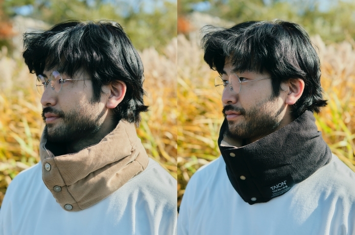 続いて、ネックウォーマーはコーデュロイとマイクロフリースを使用したリバーシブルモデル。2WAYなので汎用性に優れるうえ、ハンギングに使えるループなど、デザインと実用性を兼ね備えています。