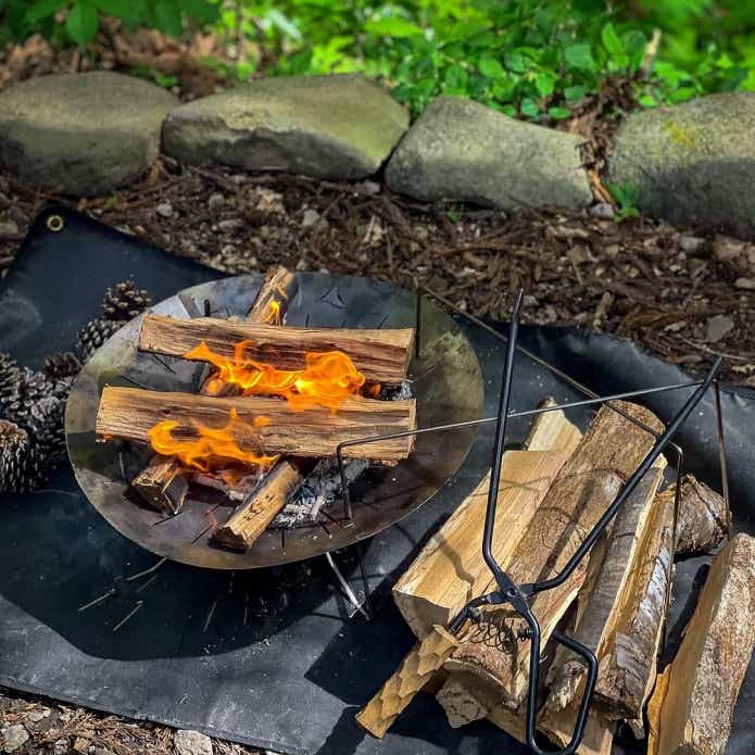 765gと軽く、薄く収納できるコンパクトさながらも、組み立てると天板の直径は40cmと大型に。そのため大きめの広葉樹もくべることができます。そう、焚き火好きを満足させるポイントは「軽くて火床が広い」こと。