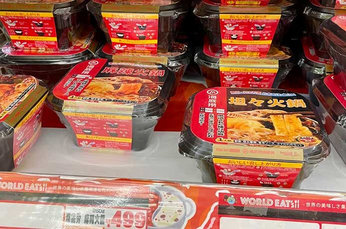 気になったのでまずはネットで購入しましたが、後日近所のドン・キホーテに行ったら、海底撈の麻辣火鍋コーナーがドーンと設置されており、たくさん売られていましたよ。