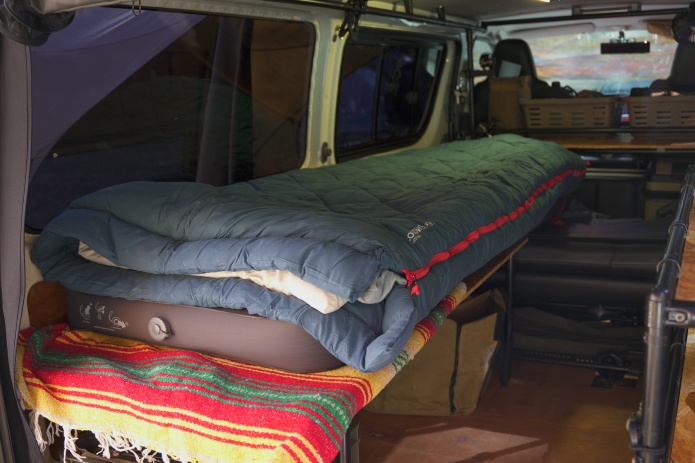 この大きさはコットとの相性もバッチリ。コットと地面の隙間からの冷気を完全にシャットアウトしてくれます。