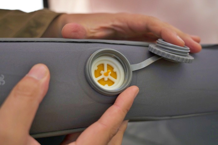 径のサイズがぴったりなので、手放しでもOK! 今回のマットであれば、約25秒で膨らみます。収納時にも空気をしっかり抜けるため、収納袋にスッキリ収まりストレスフリーです。
