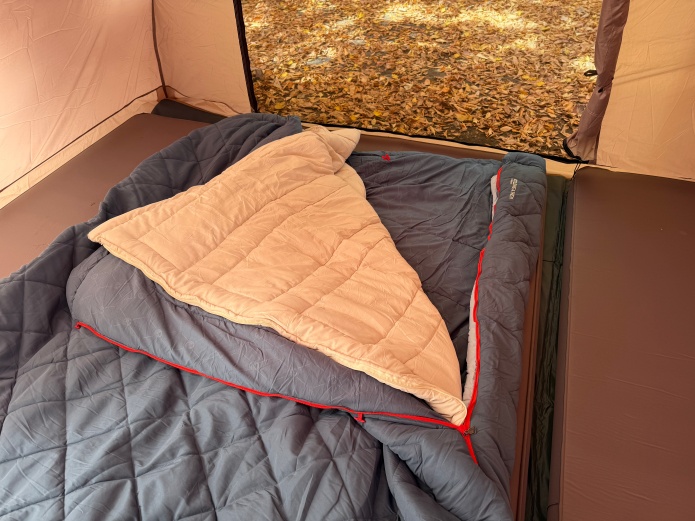 2つあれば、チャックで連結もできるので、冬にはこの組み合わせがおすすめ! 家族3人がゆったりと過ごせる広さです。