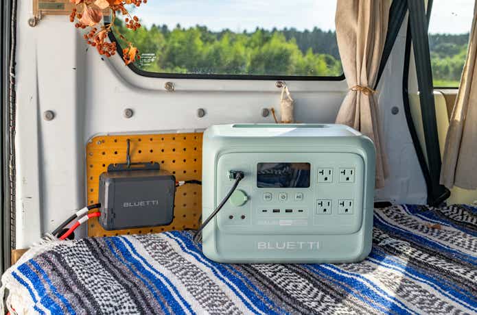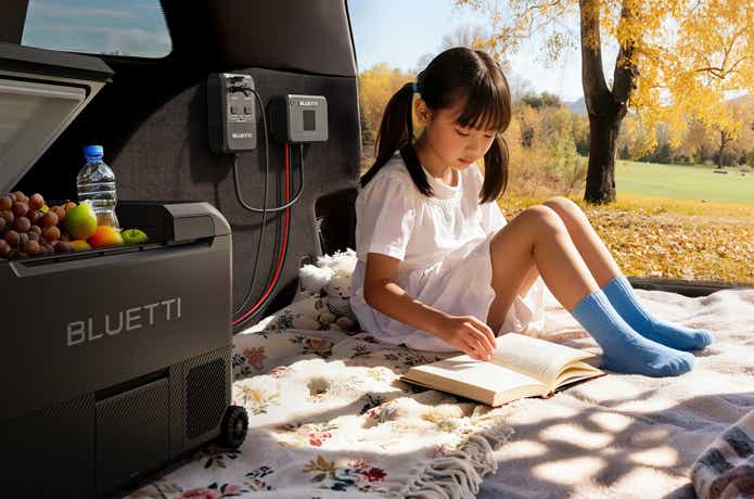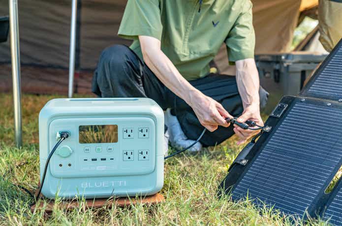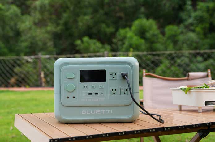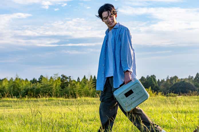 今回セットでお届けするのは、中容量帯のポータブル電源「AORA 100 V2」。BLUETTIのなかで唯一の日本限定モデルで、画面、操作ボタン、入出力ポートが日本語で表記され、説明書ナシでも直感的に操作が可能。幅広い年齢層にわかりやすく、使いやすい1台です。