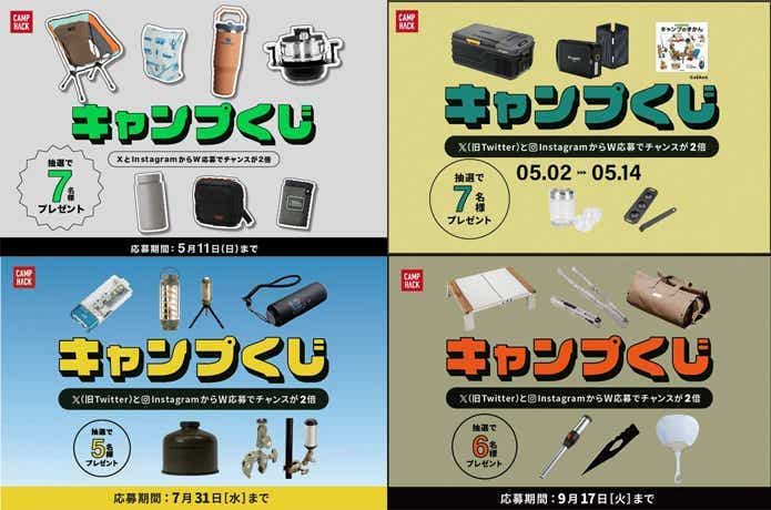 日頃の感謝を込めて、CAMP HACK読者のみなさんに編集部セレクトの豪華賞品をプレゼントする「キャンプくじ」。