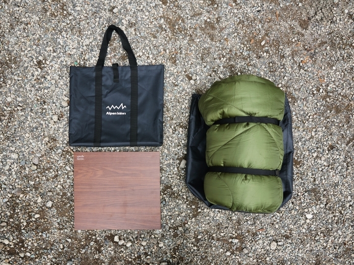 内容はシンプルで、こたつ布団と2つ折りの天板、それぞれを収める収納袋が付属。こたつ布団の袋は、ゆったりとした大きさで収納もラクラクです。