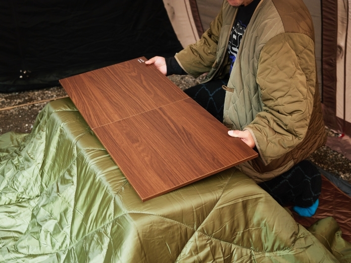 中でもこの季節に注目なのが、冬キャンプを快適にする「こたつユニット」のアルミユニットテーブル88専用サイズ。同テーブルにプラスするだけで、快適なこたつスタイルが手軽に楽しめちゃうアイテムなんです。