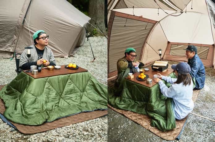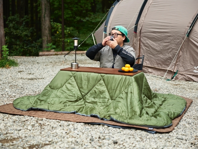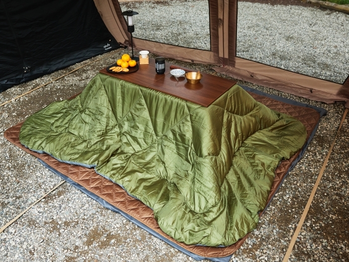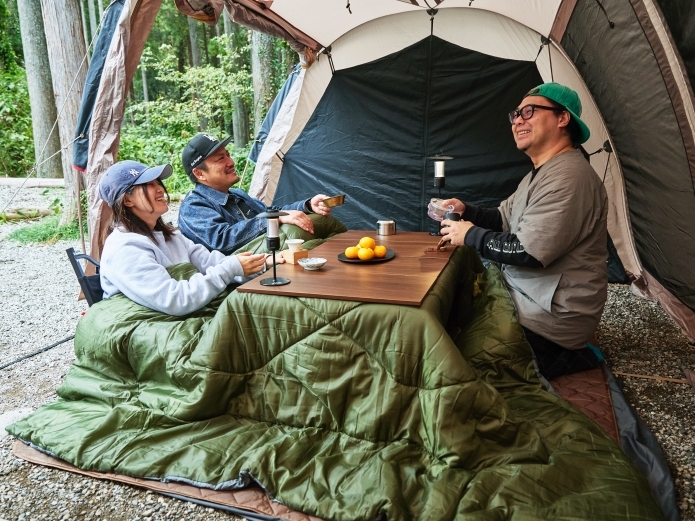 いずれのサイズもこたつ布団が濡れに強く暖かいので、おこもりスタイルはもちろん、天気の良い日は青空スタイルでこたつキャンプを満喫できちゃいます。