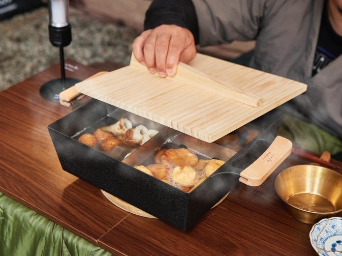 取り外し式の仕切り板と木蓋も付いているので、”キャンプでおでん”が捗ります。居酒屋や屋台の気分をフィールドで味わっちゃましょう!