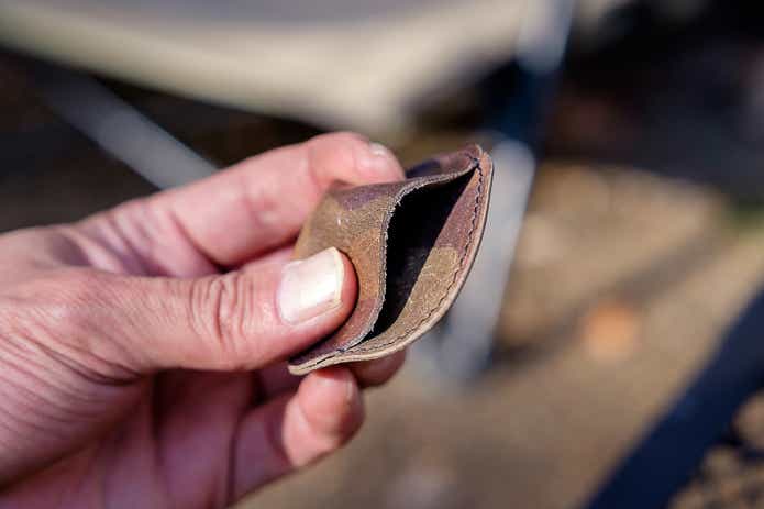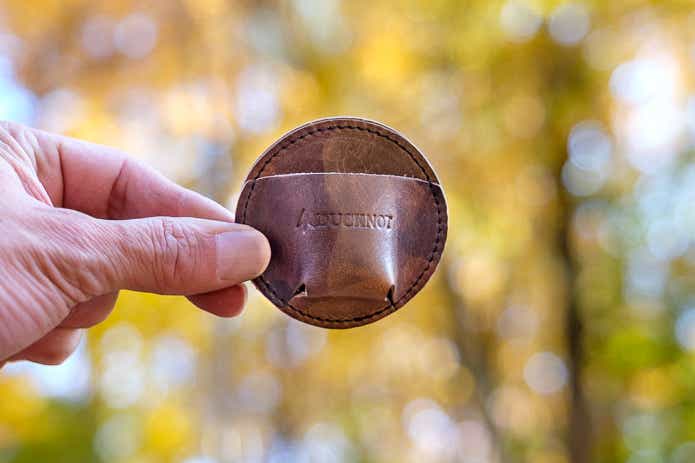 本製品はカラバリが豊富で、筆者が選んだのはイタリアンレザーの茶迷彩。上質な質感と、しっかりとした縫製が好印象です。