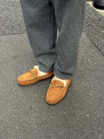 買ってみると履き心地が最高! 本来は室内履き用ですがラバーソールなので外履きとしてもいけないかな!? なんて考えてしまうくらい冬場はずっと履いていたいです