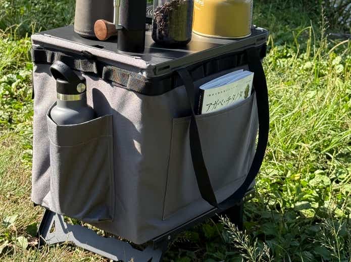 自立し、キャンプでも家でも使いやすい人気アイテム「ワンタッチバケット」を、グリーブワークスがアレンジした特別モデルです。