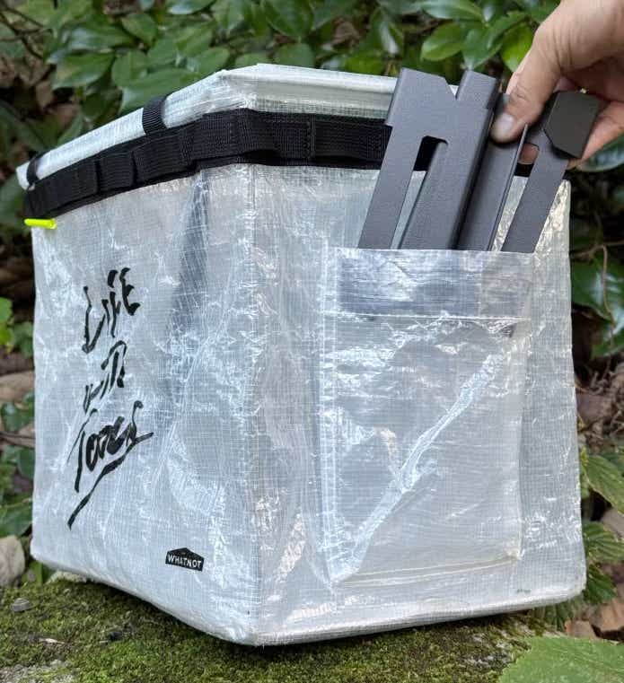 しかも収納時は、ワンタッチバケット本体のサイドポケットにすっきり収まるサイズ感。持ち運びの邪魔になりません。