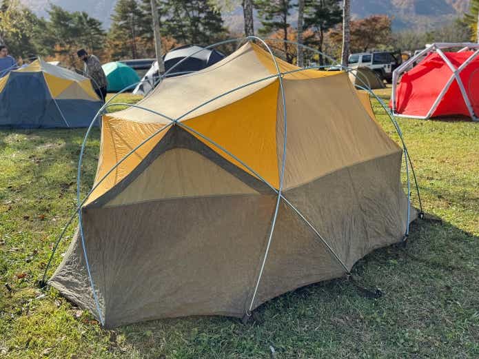 KUMAさん:今でこそ当たり前の構造ですが、当時としては本当に革命的だったでしょうね。ペグを打たなくてもテントが立つという発想がそれまでのテントになかったので。