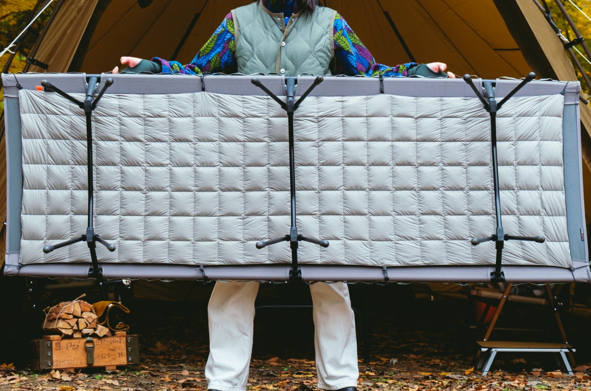 それがこちらの「コット保温ダウン」。コットの裏面に装着するだけで、地面からの冷気をしっかりブロックしてくれるスグレモノ。