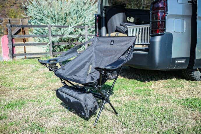 毎年、離島でキャンプをするので「軽くてくつろげるチェア」を探していたところ、このチェアに出会いました。まさかの肘置き付きで快適性は抜群。それでいて約1,500gという軽さも両立しているのは驚きです。クラウドファンディングで見つけて、即決でした。