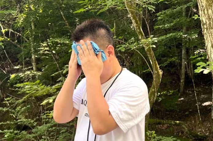夏キャンプでは、設営中に「サウナかよ」というレベルで発汗する筆者。そもそも「バスタオル大王」みたいな大汗かきなので、汗拭きタオルは不可欠な存在です。