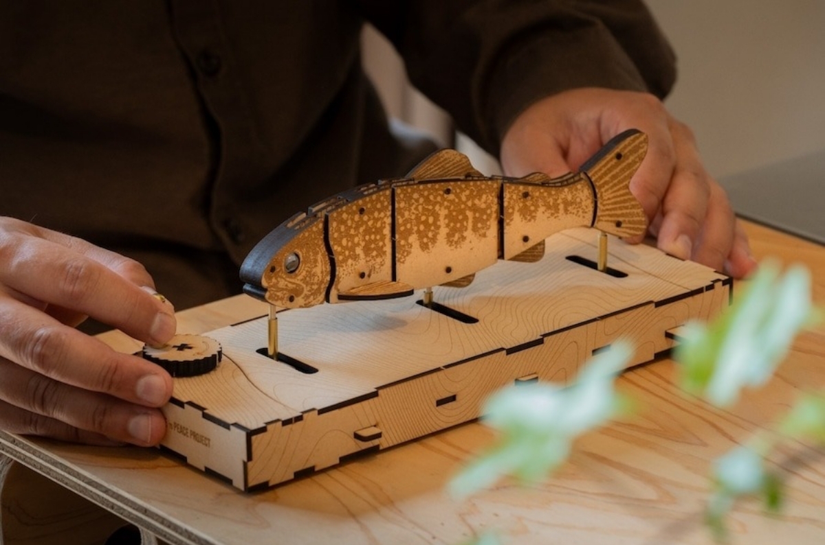 「手を動かしてるうちに、いつのまにか時間が溶けてた。」そんな時間を味わえるのが、KNOCK DESIGNのからくり工作キット「ココロメカニカ(イワナ)」。