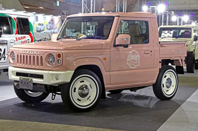 現行モデルのスズキ「ジムニー(JB64W)」をベースに、外装にはKLCの「Heritage(ヘリテージ)」エアロキットを採用。