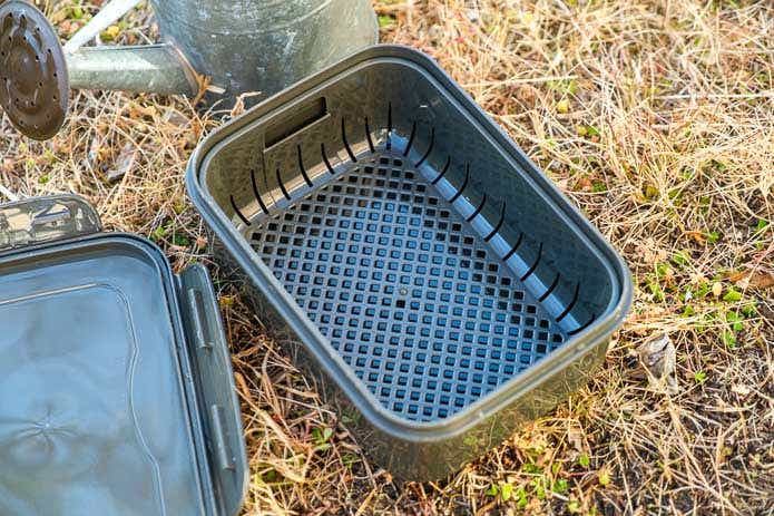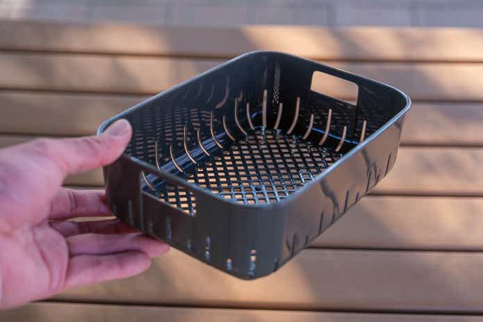 網かごの底面は多少浮くようになっていて、落ちた水に内容物が浸り続けることはありません。