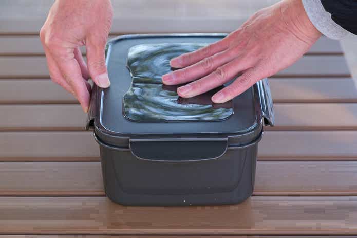 さて記事の前の方で「メーカーによると本製品は完全防水ではない」と述べました。しかしフタの強固さからすると、防水性能はかなりのものではないかと……。そこで実際に水をぶっかけるなどしてテストしてみました。