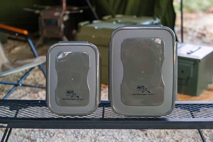 2サイズともキャンプ場に持って行ってみました。サイトに置いてみると、なんだか妙にしっくりきます。筆者はミリタリー風味が好きでオリーブドラブのキャンプ用品を多く使っているのですが、本製品は見事に馴染みました。