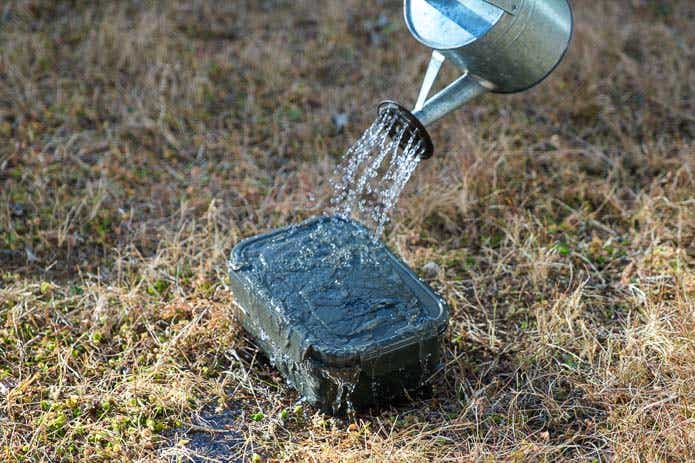 そこでフタと外箱の接合部を狙い、執拗に水をかけ続けました。