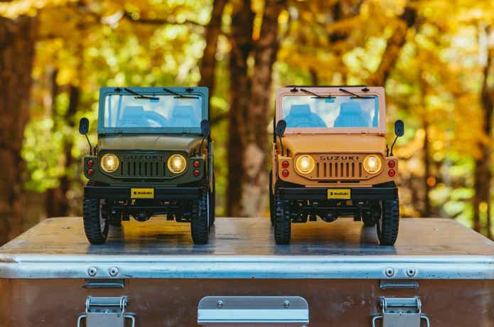 スズキ公式ライセンスを取得したモデルだけあって、フロントのSUZUKIロゴや内装の作り込みまで抜かりなし。幌は着脱式で、オープン仕様と幌ありの2つの表情を楽しめるのもポイントです。