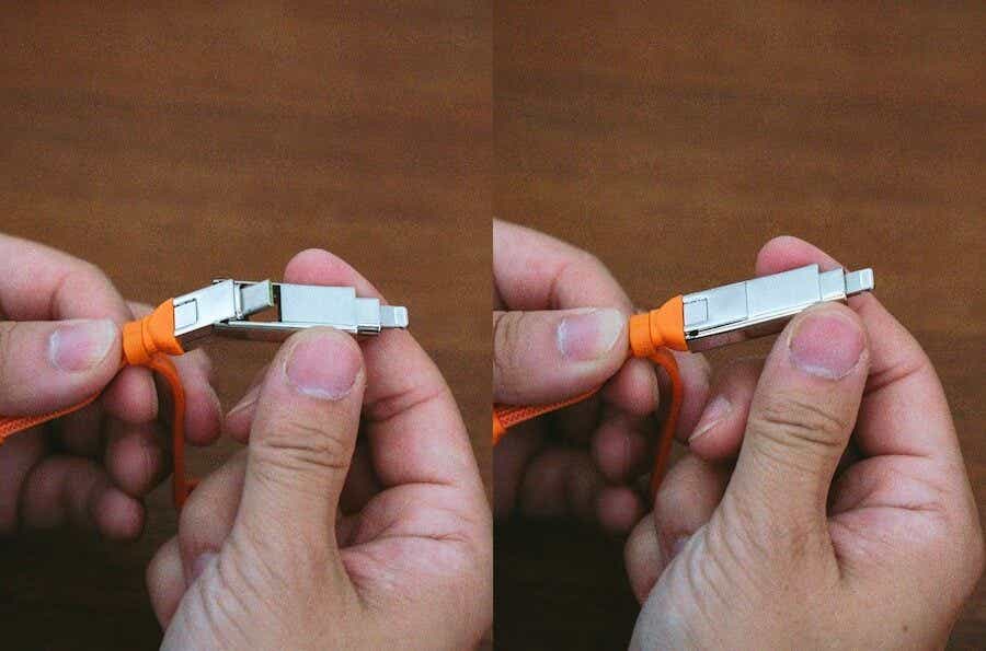 片側にはUSB-CとLightning、もう片側はUSB-CとUSB-A。上部パーツを引き抜くと、それぞれUSB-Cが現れ、組み合わせ次第で幅広いデバイスに対応します。