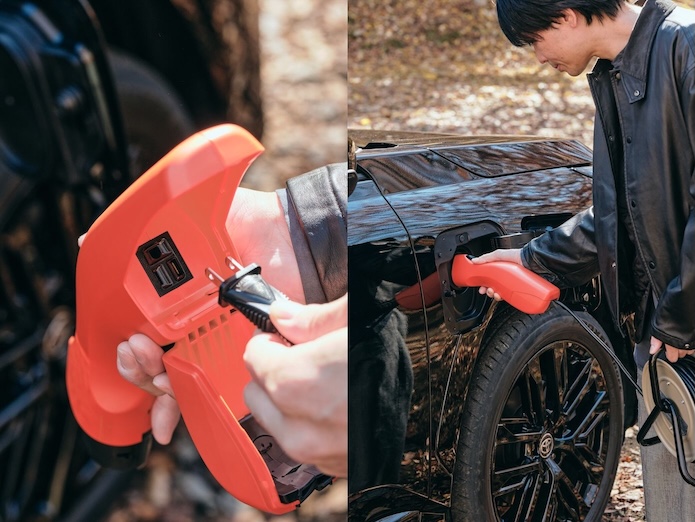 「新型RAV4 PHEV」は運転席側の側面に普通充電インレットがあり、そちらに付属のヴィークルパワーコネクターを差し込むことで、外でも家庭と同じAC100Vのコンセントとして電力を使うことができます。