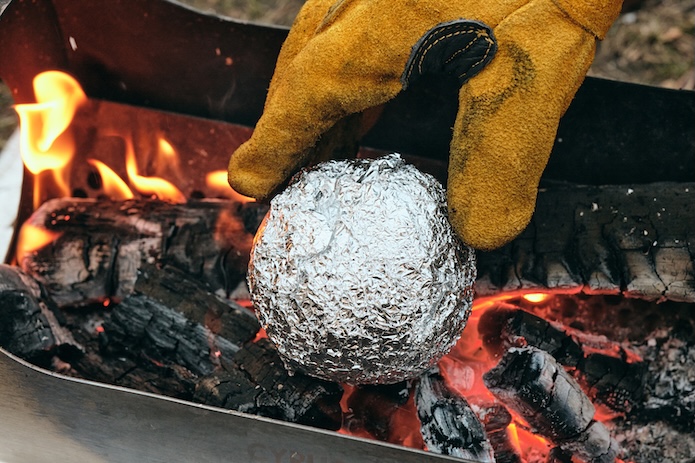 さすが焚き火の達人。パティシエも大満足の焼き加減だそうです。すると三上シェフが、何かを思いついたようです……。