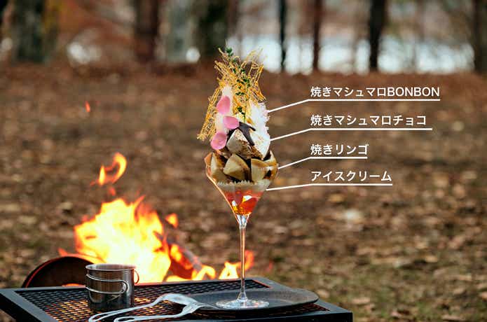 なんと完成したのは、焼きマシュマロをベースにした、究極のキャンプスイーツ「焼きマシュマロパフェ」!