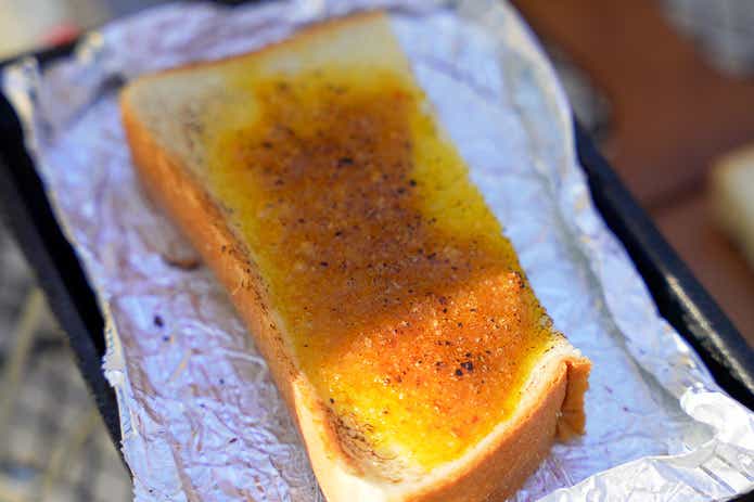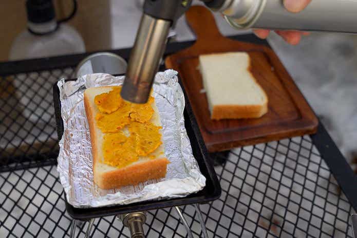 本品を塗った食パンを鉄板に乗せ、軽く焼きつつ同時にトーチバーナーで炙ります。炎を使う一手間は、不思議と面倒ではありません。むしろ面白く感じられました。