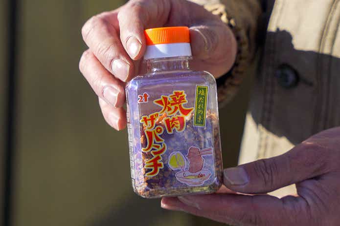 まずは「にとん屋 焼肉ザパンチ」を試してみます。ガーリックの効いたスパイシーな調味料で、肉につける場合は、レモンやすだち等の柑橘果汁にまぜて使います。価格は税込426円。