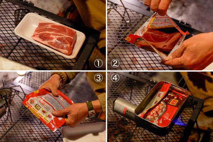 2.本品に肉を入れてジップを閉じる