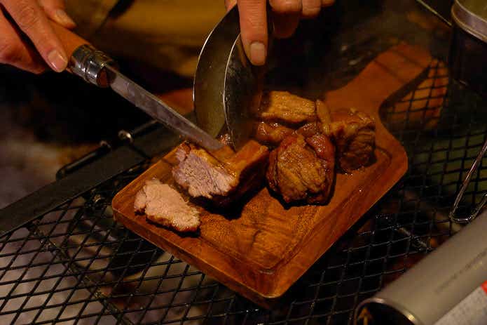 さあ、もう大丈夫でしょう。好みの厚さにスライスして……。