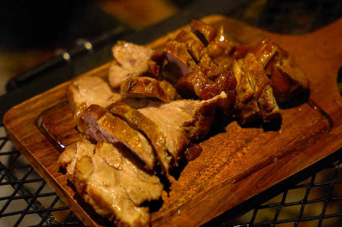 普段から料理をする人、焼豚を自分で仕込んだことのある人なら、その仕上がりに驚くと思います。電子レンジなら8分のところ80分もかかりましたが、何か面倒な作業があるわけでなし、呑みながら待つのも楽しい時間でした。