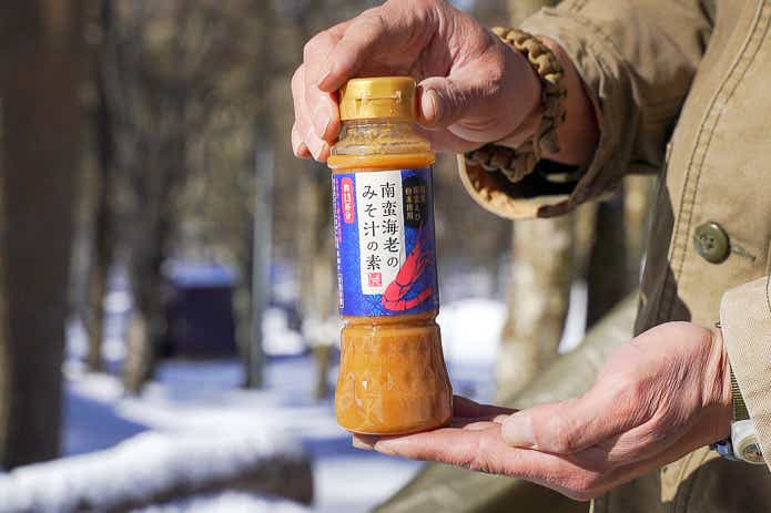 最後に番外編として、「南蛮海老のみそ汁の素」(税込537円)を紹介します。お湯で溶かすだけで海老の風味豊かな味噌汁ができる秀作です。