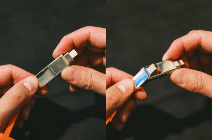 さらに、端子同士はマグネットでパチッと一体化。できるだけ分離しにくい構造になっていて、持ち運び中に外れたり、落としたりといった煩わしさもありません。