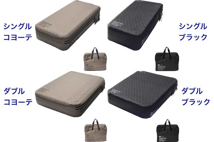 | サイズ | 【シングル】使用時:(約)192x95x40cm / 収納時:(約)46x63x23cm 【ダブル】使用時:(約)195x145x40cm / 収納時:(約)53x65x28cm |