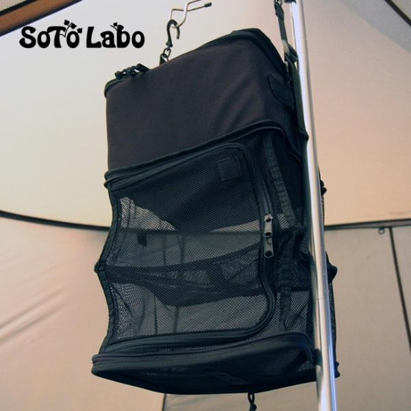 ●両脇のフックを使って、ハンガーラックやタープポールなどに吊り下げ可能