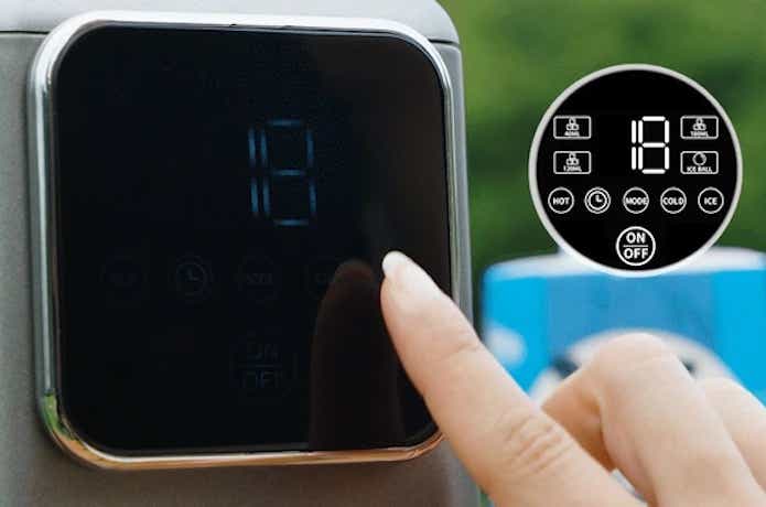 モード選択や製氷量の調整、タイマー予約などはすべてタッチパネルで操作。直感的に扱えるシンプルな設計で、防滴性能にも配慮されています。