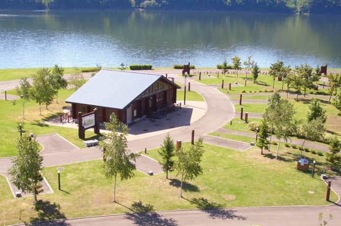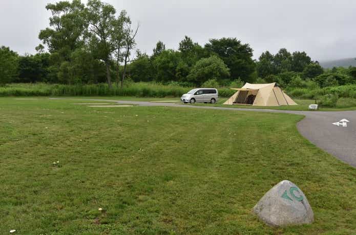 大沼湖畔の横にある野営場で、無料で使用できる東大沼キャンプ場。無料ながらも水洗トイレ・炊事場ともに2箇所ずつあって、キャンプをするうえで必要な設備は十分整えられています。