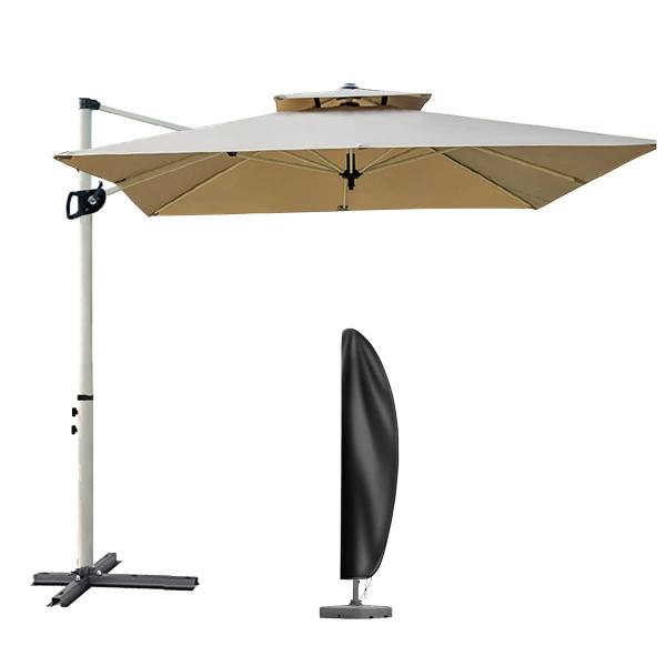 2層・3層式タイプのガーデンパラソルは、傘の部分の張布が重なるような構造になっており、布の重なり部分が通気口になることで風を逃がせる仕組みになっています。骨組みも丈夫な素材で作られているものが多いので、風の影響を受けにくく、倒れたり飛ばされたりしにくいガーデンパラソルをお探しの方におすすめです。