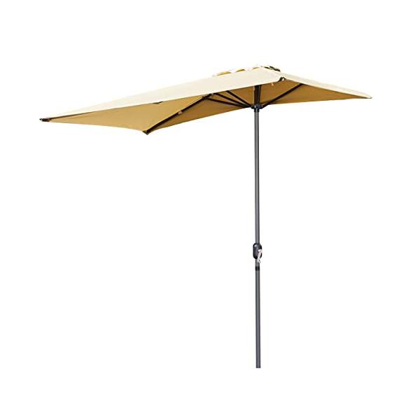 半円タイプのほかに、長方形タイプなどもあるので設置場所のスペースに合わせて選んでみましょう。通常の円状パラソルの半分のスペースになるので大人数での使用には不向きです。