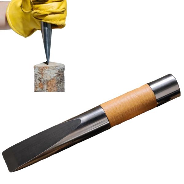 素材の硬度を高める硬化熱処理を施した鋼材を使用し、耐久性にこだわったアイテム。先端にかけてスリムになるホローグラインド形状により食い込みやすさも追求。固い広葉樹もしっかり割れます。